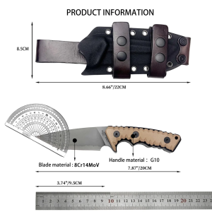 Whether you’re deep in the forest, on a camping trip, or facing an unexpected survival situation, this knife is ready for action. The 8Cr14MoV steel blade stays sharp through rigorous tasks, while the ergonomic G10 handle provides a secure, non-slip grip—even in wet or cold conditions. Its versatile blade design handles everything from cutting rope and preparing food to tactical tasks, making it an essential companion for hunters, campers, and outdoor adventurers. Built tough to endure harsh environments, this knife ensures reliability when you need it most, and its corrosion-resistant construction keeps it performing flawlessly over time.