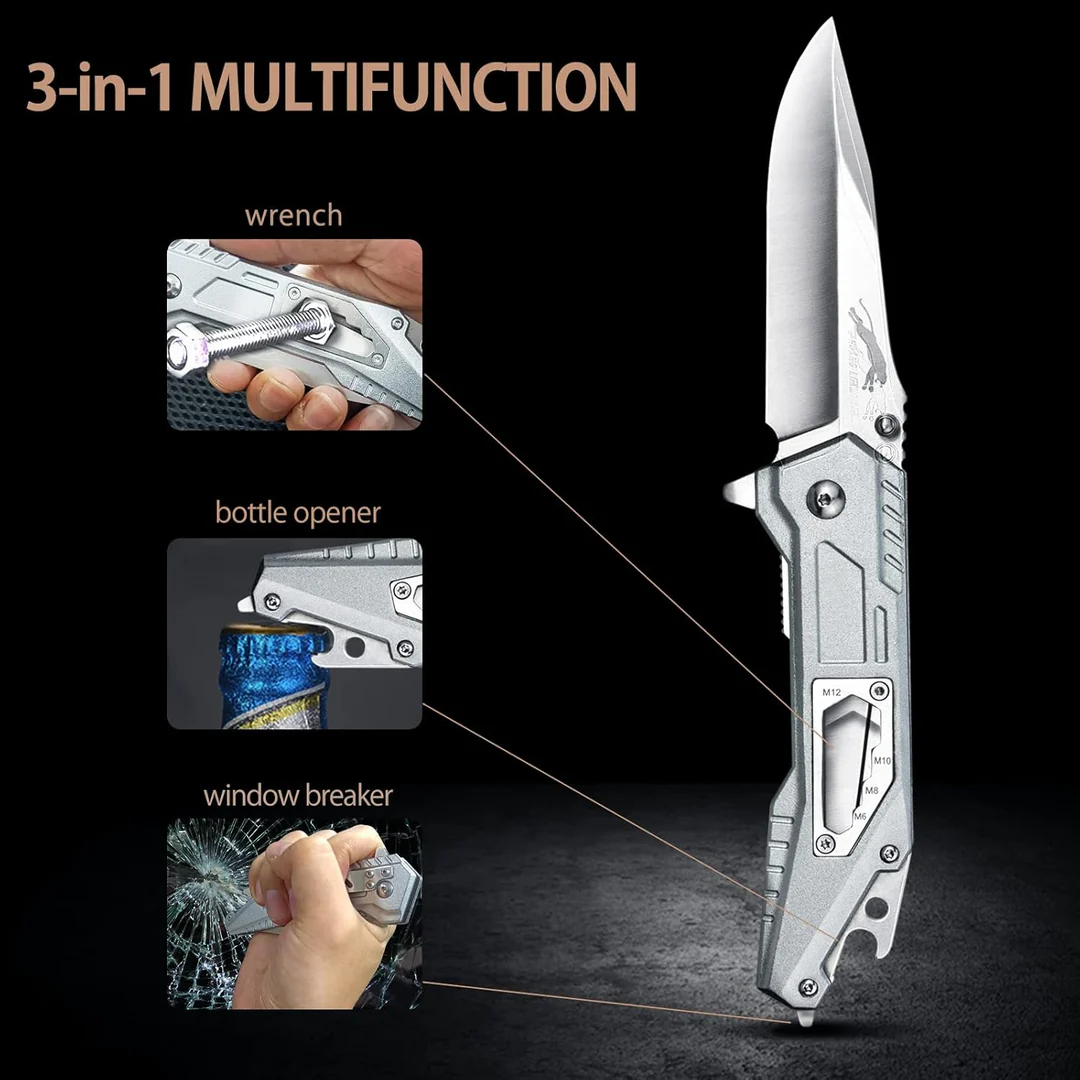 Whether you’re camping, hiking, or just tackling everyday tasks, this multi-tool has you covered. Slice through ropes with the sharp main blade, open a refreshing bottle after a long hike, or tighten a loose screw in seconds. Its compact folding design and ergonomic grip make it easy to carry and handle safely, while the built-in safety lock prevents accidents. Additional tools like the file, can opener, or nail cleaner give you even more versatility, all in a durable, rust-resistant package.