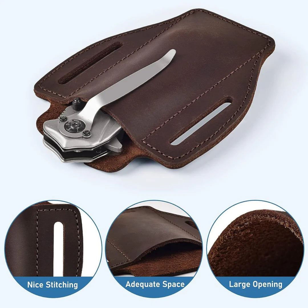 This multi-functional folding knife storage waist bag is designed specifically for outdoor enthusiasts, combining practicality with convenience. Made from high-quality genuine leather, it is durable, soft to the touch, and crafted with meticulous attention to detail, offering both style and functionality.