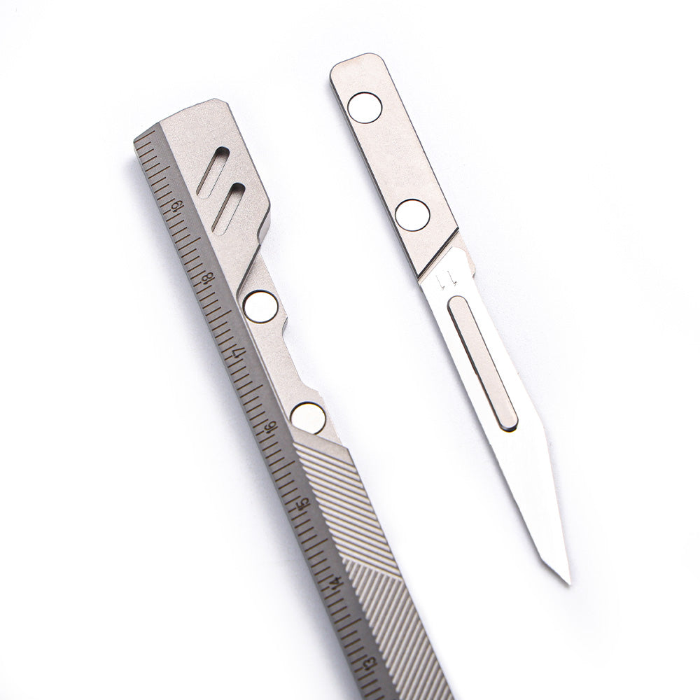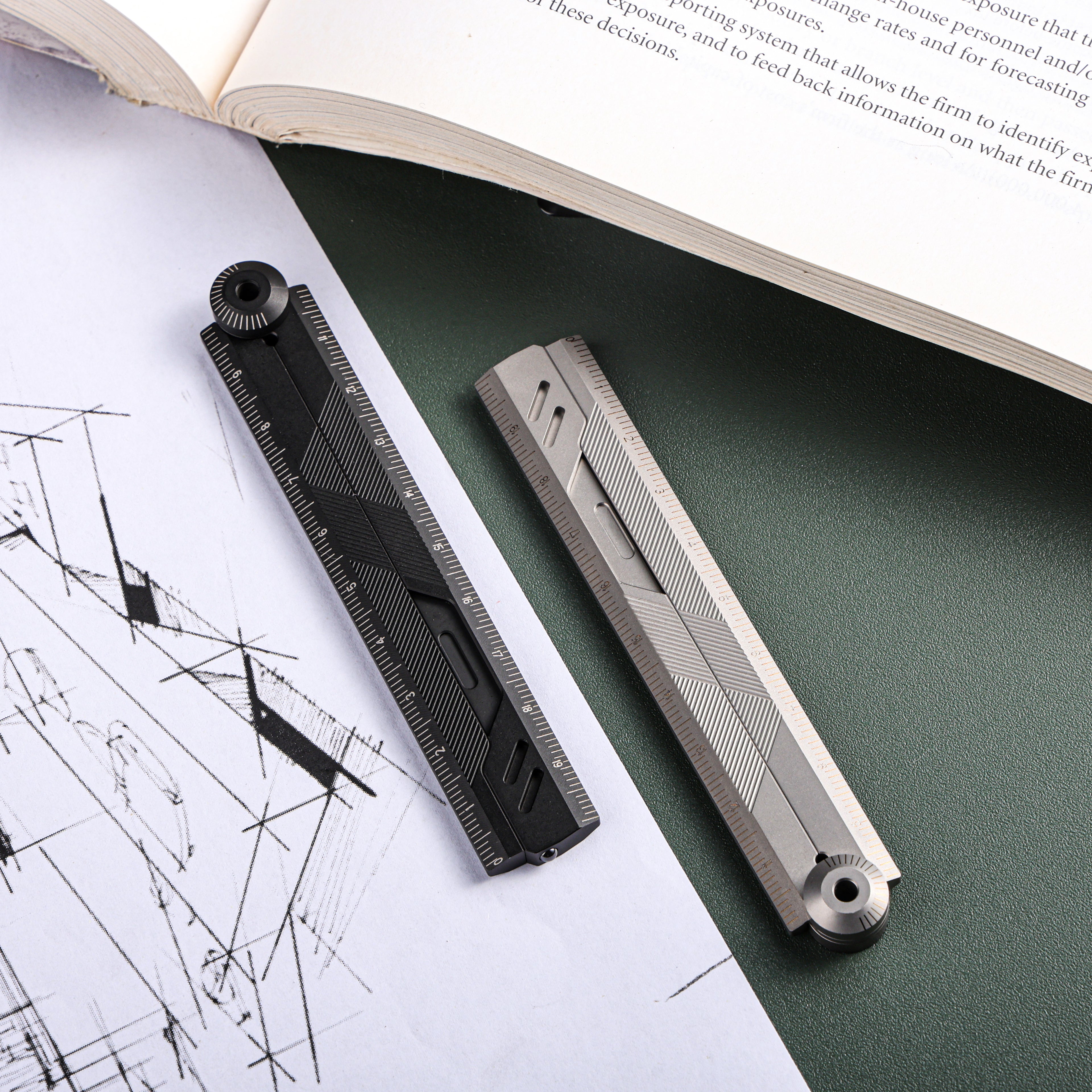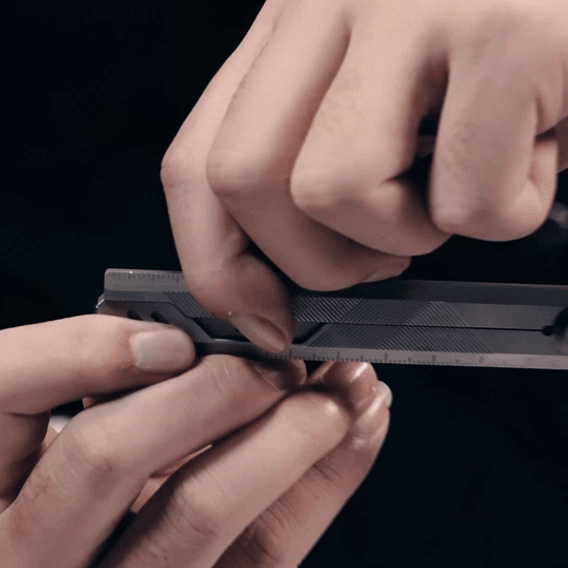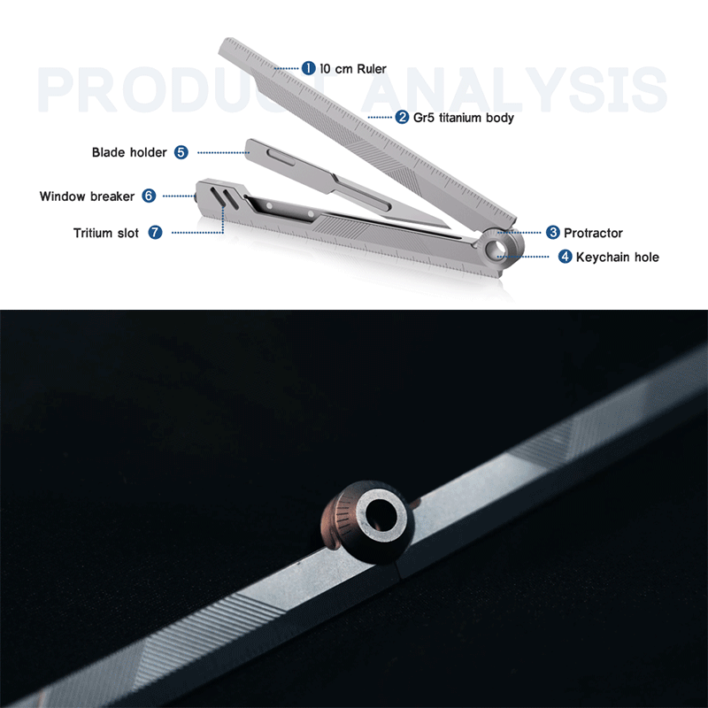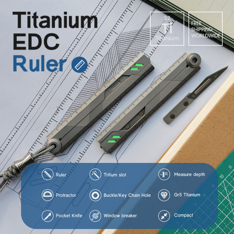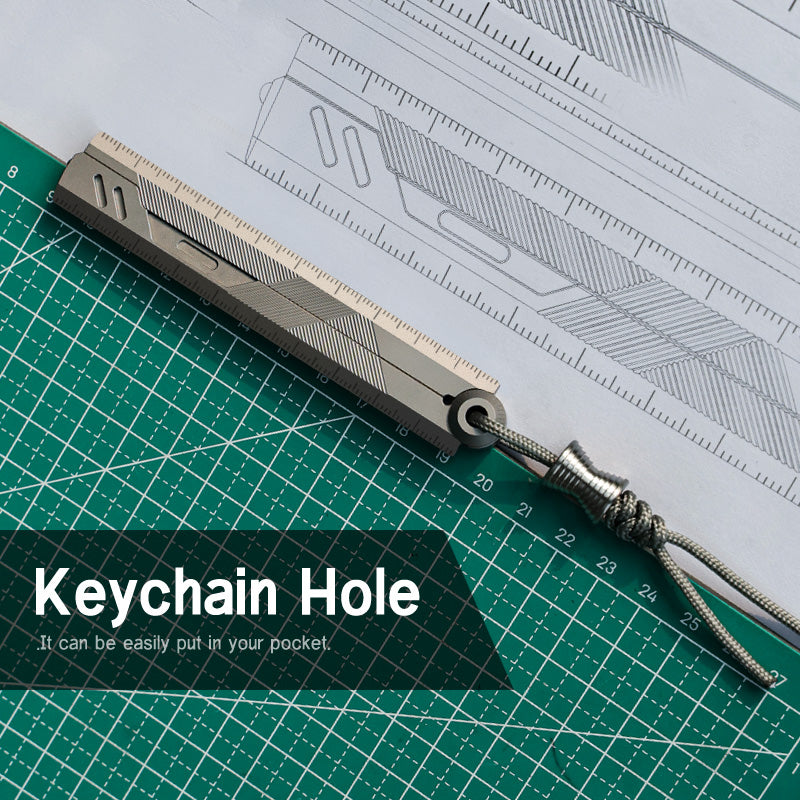 Built from aerospace-grade titanium, this foldable EDC ruler combines a dual-scale system, protractor, and a hidden craft blade into one sleek, magnetic design — engineered for creators, makers, and precision lovers.