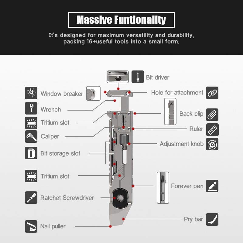 The PryMax 2.0 is the ultimate titanium multitool engineered for those who demand performance and precision. Crafted from aerospace-grade GR5 titanium, it delivers 13+ essential tools in one compact form—combining strength, versatility, and minimalist design to handle anything, anywhere.